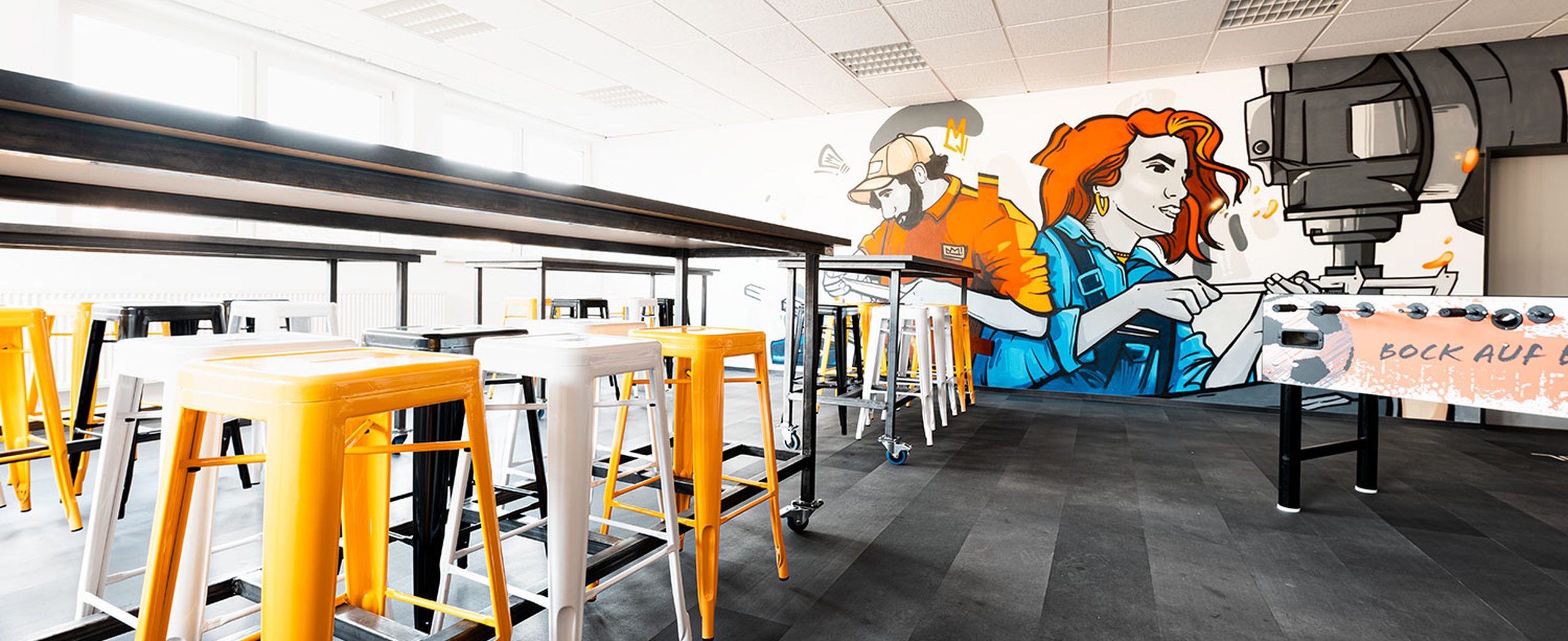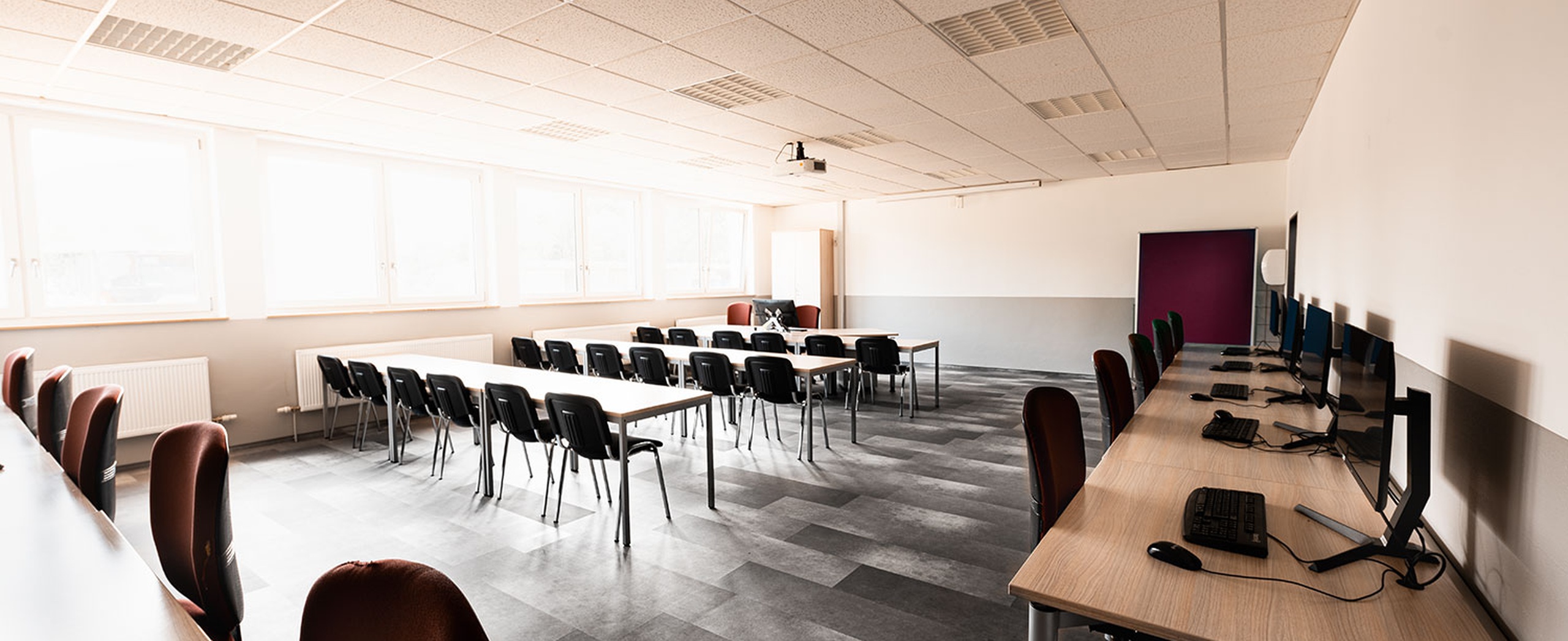 REGUPOL infintium was installed as planks (LRP®) in the education center’s lounges and corridors. Designed to withstand daily use with work shoes, the floor provides a durable yet comfortable surface for movement and informal breaks. The clean plank format supports an open spatial feel, while the integrated logo adds a subtle, identity-defining detail that connects the floor to the character of the space.