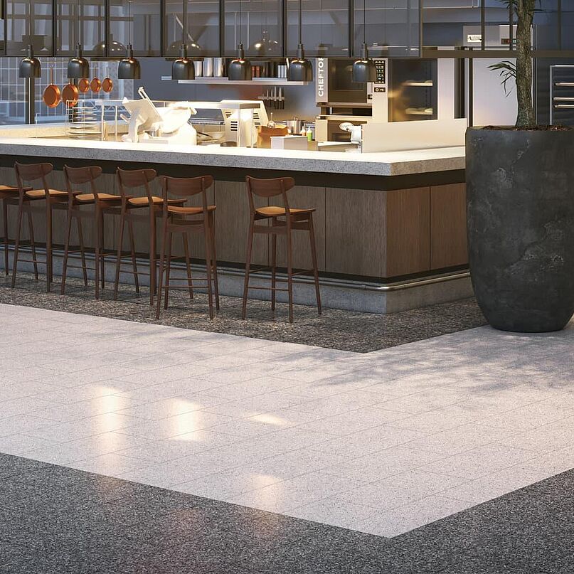 Dark surfaces traced with warm beige and sand tones echo the glow of a skyline at night. Intel embodies urban sophistication — clean, precise, and intelligent. You can feel the rhythm of the city, the pulse of architecture and progress. A floor that tells stories of design, technology, and forward movement.