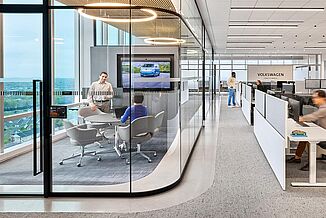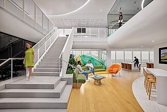 The Volkswagen America Headquarters in Herndon, Virginia, stands as a testament to sustainable design and the creation of quality commercial spaces. Throughout the 185,000-square-foot modern space designed by Gensler, REGUPOL revolution, a product made from recycled tire rubber, delivers a flooring solution that aligns with Volkswagen’s core values of innovation, quality, and environmental stewardship.